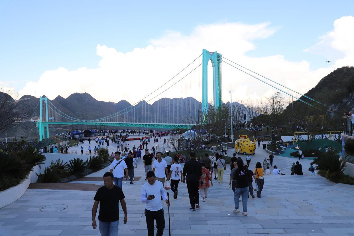 数据显示,10月1日当天,花江峡谷大桥旅游区接待游客约2万人次,花江峡谷大桥收费站出口车流量达4429辆次。