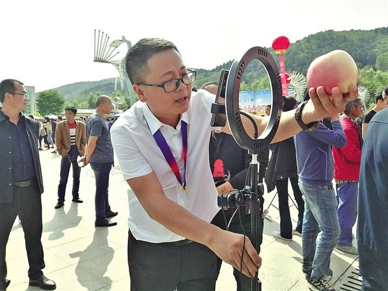 9月23日,富县2025年农民丰收节活动现场,工作人员直播带货,助力农产品销售(资料照片)。 本报通讯员 夏蓓蓓摄