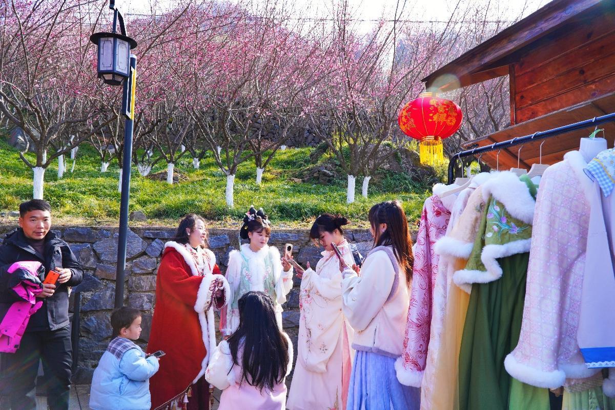 在占地140余亩的子午梅园,荟萃了140 余个梅花品种,目前正迎寒陆续绽放,散发着沁人心脾的幽幽冷香。据了解,从开园至3月底,这里将轮番上演各类精彩活动,与万千梅花相映成趣。漫步梅林,花枝交错编织成浪漫花廊。赏梅期间,既能邂逅汉服佳人抚琴起舞的雅致景致,又能逛热闹非凡的梅苑集市。香气四溢的特色小吃、独具风味的梅花宴、清甜可口的梅花酥等专属美味静待品鉴,让游客在暗香浮动的梅林间,邂逅中式浪漫。