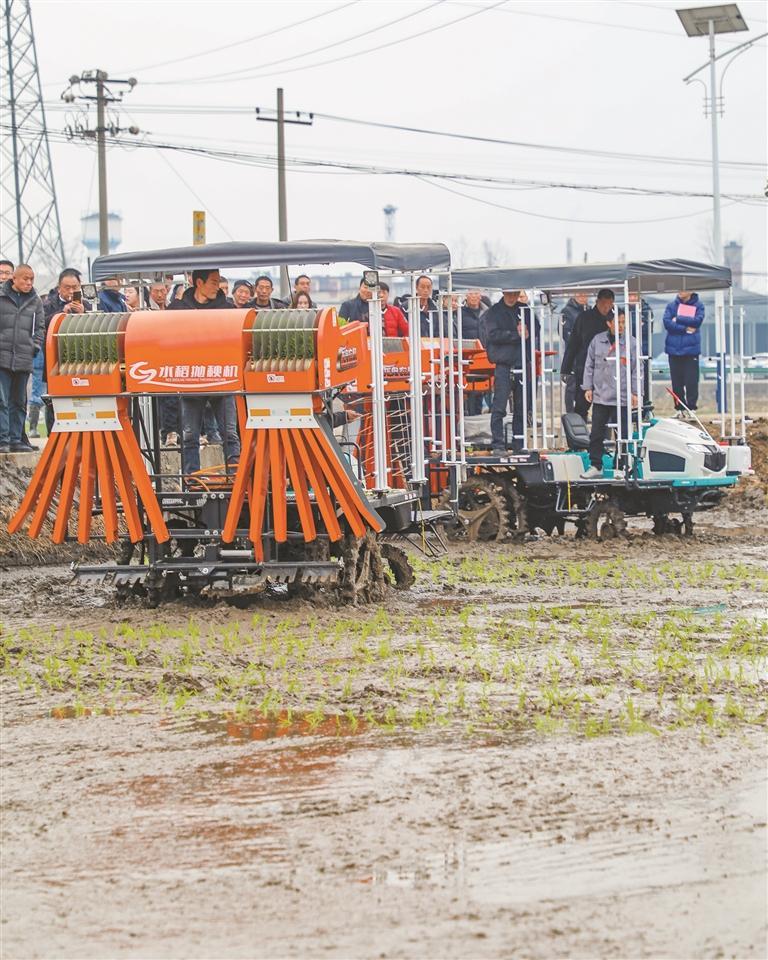 1月23日,在勉县勉阳街道贾旗村,一簇簇秧苗从崭新的抛秧机机舱抛出,稳稳地“站”在田里,行距均匀、秧苗挺立。来自全市的60余名水稻种植大户聚精会神地在一旁观摩学习。他们关心的不仅是机器如何高效作业,还有在新技术加持下的水稻收成。