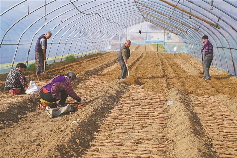 2月24日,在位于西安市临潼区任留街道的西安市临潼区骊美薯业有限公司种植基地,温室大棚内暖意融融、生机勃勃。