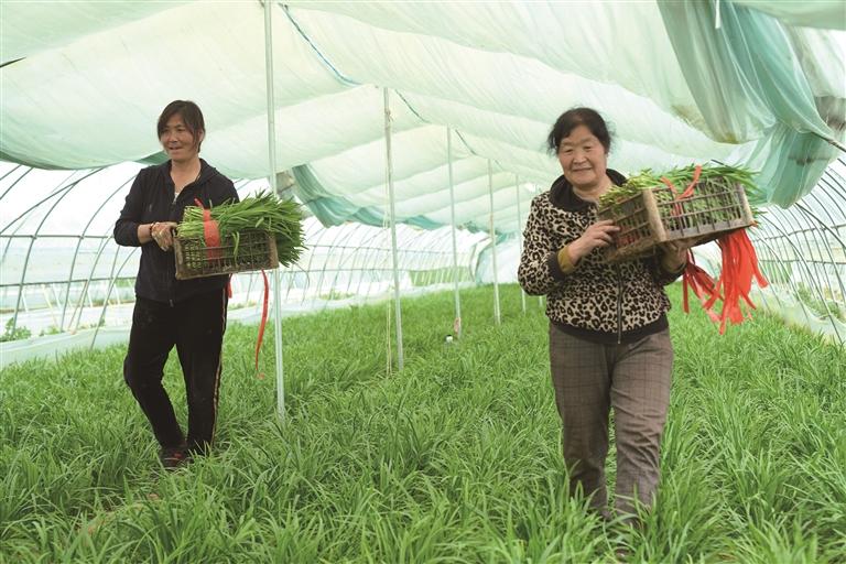 “我们6时就开始割韭菜,每天能割500多公斤。”工人王娟丽说,“在这儿上班离家近,能顾上家。”